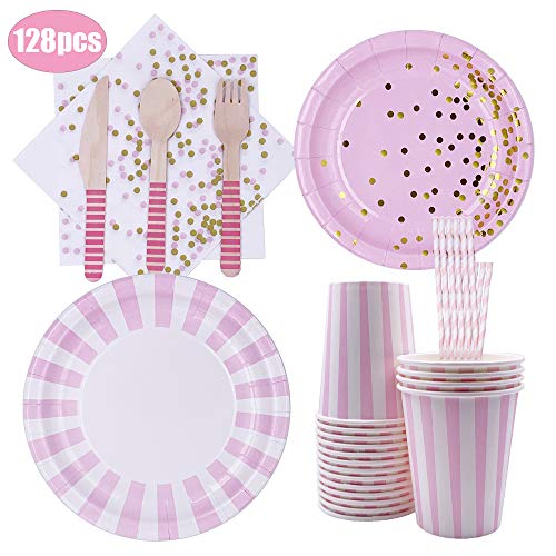 ♦ Elegante ed Elegante ♦: le strisce rosa e il design abbronzante del vassoio della carta sono raffinati ed eleganti. Il libro bianco con strisce rosa lucide sul tavolo sarà molto popolare sul tavolo e aggiungerà lucentezza alla tua festa.