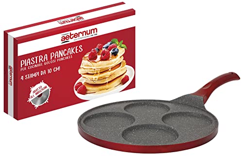 Aeternum Piastra Pancake 4 fori, Red, Diametro 26 cm, Adatto all’Induzione, Alluminio, Rosso