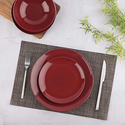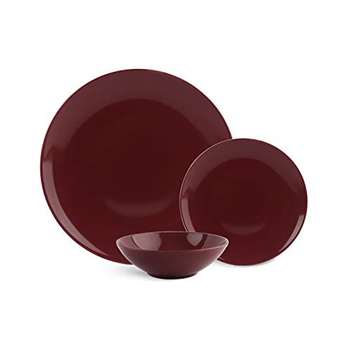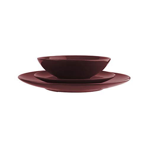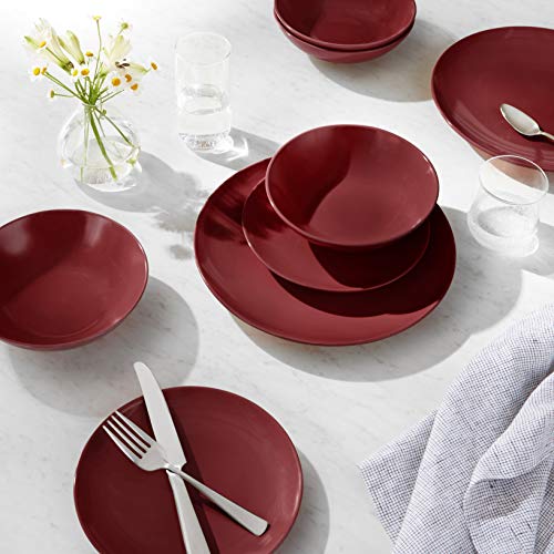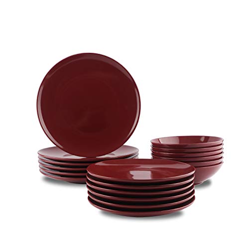 AmazonBasics, servizio di piatti, in grès, da 18 pezzi, colore Rosso carminio, per 6 persone