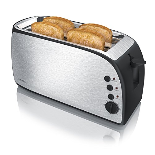 🍞 Modello: Arendo – tostapane automatico con slot da 4 fette con scaldapanino incluso e vassoio portabriciole | Capacità fino a 4 fette di pane | Con tostatura continua e ben sette gradi di doratura (dall’1 al 7) | Risultato perfetto grazie a due slot particolarmente lunghi dotati anche di meccanismo di centraggio | 301829