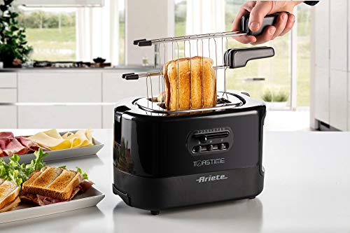 Ariete 159 Toastime Tostapane 2 Fette con Pinze con Funzione Scongelamento E Riscaldamento, 700 W, Nero
