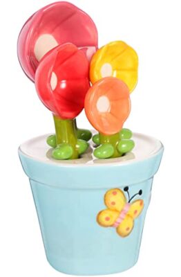 1 set di misurini a forma di fiore Cucchiaio dosatore con base di cottura Design unico diviso per un facile utilizzo e conservazione. Misura accuratamente gli ingredienti secchi e liquidi.