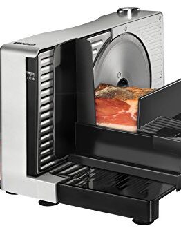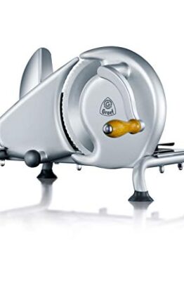 Modello in metalloLama in acciaio INOX 190 mm ØManovella con impugnatura in vero legnoRegolazione dello spessore di taglio 0-15 mmParticolarmente adatta per il pane Prezzo: (alla data del – Dettagli)
