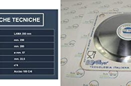 DIAMETRO ESTERNO LAMA mm 350DISCO INTERNO LAMA O PARALAMA DIAMETRO mm 280FORO CENTRALE mm 57FORI PER LE VITI N° 4SPESSORE TOTALE LAMA: mm 22,5 IN ACCIAIO PREGIATO 100Cr6 Prezzo: (alla data del – Dettagli)