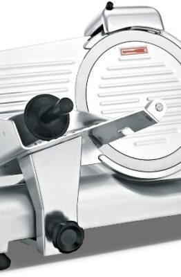 AFFETTATRICE PROFESSIONALE SEMI-AUTOMATICA LAMA ø 25 cm – 3 SISTEMI DI SICUREZZA – certificazioni per uso domestico ed industrialeMOTORE POTENTISSIMO, il PIU’ POTENTE SUL MERCATO 320 WATT e con 3 protezioni di sicurezza per l’USO, ...