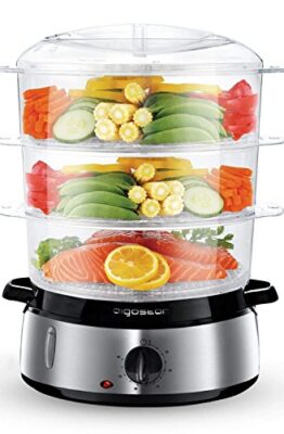 【ATTACCO A 3 PIN PLUG TIPO UK & SALUTARE】 Vaporiera elettrica 800W, veloce, efficiente e BFA Free, ottima per carne, pesce, riso, frutti di mare e verdure salutari. Timer di 60 minuti prepara i tuoi ...