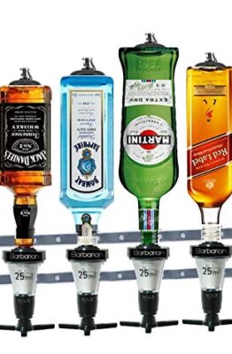 The Barbarian 6 bottiglie per alcolici: un ottimo modo per versare lo shot perfetto ogni volta! 6 bracci caricati a molla tengono saldamente le bottiglie da 70 cl o 1 litro capovolte, pronte per essere ...