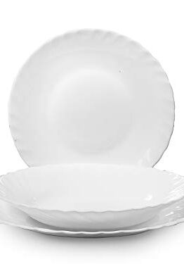 L’eleganza classica del piatto tondo ondulato per la tavola quotidianaSet da tavola di piatti realizzati in vetro opale temperato, 18 pezzi composti da 6 piatti piani, 6 fondi, 6 frutta; lavabili in lavastoviglie; utilizzabili in ...