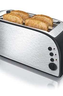 🍞 Modello: Arendo – tostapane automatico con slot da 4 fette con scaldapanino incluso e vassoio portabriciole | Capacità fino a 4 fette di pane | Con tostatura continua e ben sette gradi di doratura ...