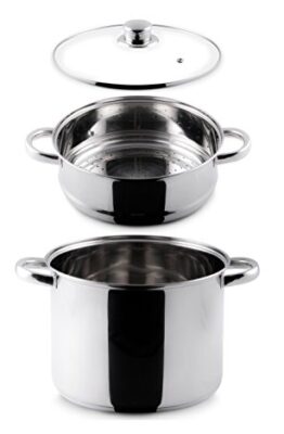 Pentola e cestello in Acciaio INOX 18/10Il pratico cestello con fori permette di cuocere a vapore, preservando sapori e valori nutrizionaliIl coperchio trasparente in vetro temperato consente di controllare lo stato della cotturaIl fondo triplo ...