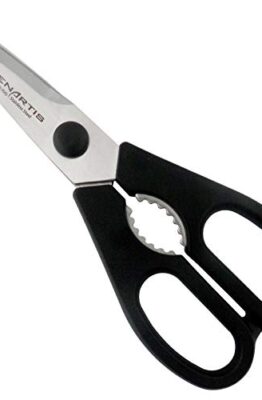 Forbici da cucina professionali: le forbici da cucina multiuso sono realizzate in acciaio inox e sono forgiate a caldo per aumentare la loro resistenza ha una misura di 20 cm – 8″ e il filo ...