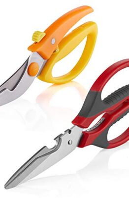 Utensile da cucina multifunzionale: queste forbici professionali da cucina sono ottime per le principali attività in cucina, dal taglio di carne, costole, pollo, frutti di mare, barbecue, verdure e erbe aromatiche. Appositamente progettato, due fori ...