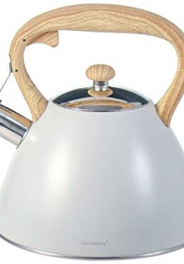 Piccolo bollitore a fischio che contiene 1,5 litri di acqua calda o tè. Perché niente batte il suono distinto di un fischio musicale a vapore proveniente da un bollitore quando l’acqua raggiunge il suo punto ...