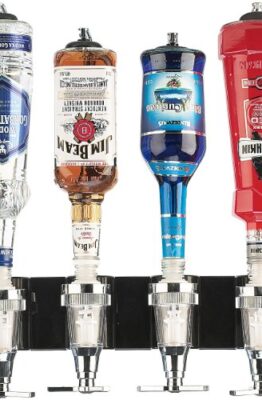 Pratico portabottiglie per 4 bottiglie con dosatore 4 cl.Ottimo per montarlo vicino ad un muro.Bisognerà semplicemente posizionare i bicchieri all’estremità sottostante e verranno riempiti velocemente ed accuratamente.Dimensioni: 365 x 380 x 145 mmMolto bello esteticamente ...