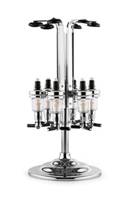 dispenser bevande argentato con 6 porta bottiglie|sei dosatori con meccanismo di sostituzione rapida|regolabile per diverse bottiglie da 0,7 a 1 litrorapida distribuzione di bevande e dosaggio preciso|struttura girevole con basamento cromatoquantità dosatore: 4 cl|tappi per ...