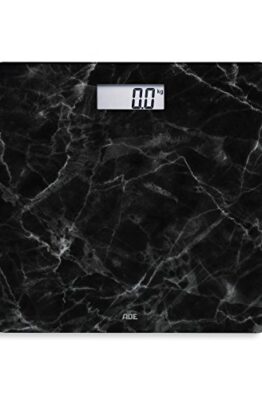 Bilancia digitale da bagno in stile marmo: classica, leggera ed elegante in nero/biancoSuperficie di pesatura in vetro di sicurezza tempratoDisplay LCD: 73 x 28 mm, unita di peso: kg, lb e stIndicatore di sovraccarico e ...