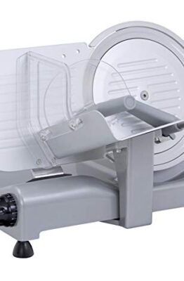 Affettatrice 100% made in ItalyColore: ArgentoStruttura in alluminio fuso, base laccataCoprilama, piatto, paratia in alluminio ossidatoMotore professionale ventilato 230V-50HZ Watt 140Lama da 250 mm professionale, temperataSpessore di taglio fino a 14/16 mm.Affilatoio amovibile alloggiato sotto ...