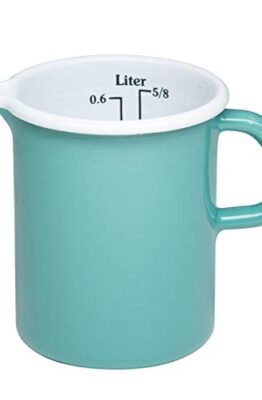 Misurino in smalto con manico smaltato, scala in 2 pezzi facilmente leggibile in centilitri e 1/8 litri (o ¼ litro)