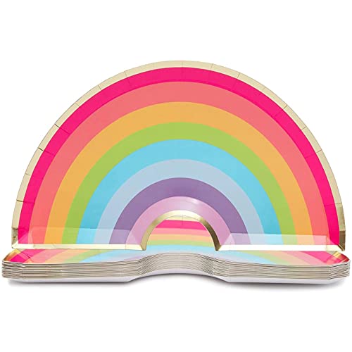Decorazioni per feste arcobaleno: i bicchieri di carta arcobaleno sono realizzati in lavagna bianca da 230 g/m²; i piatti e i tovaglioli sono fustellati in archi sono dotati di una bella stampa arcobaleno con accenti in lamina d’oro