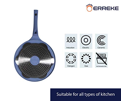 Antiaderente e facile da usare: il doppio strato antiaderente di alta qualità che abbiamo usato nelle nostre padelle ti aiuterà a rimuovere i tuoi pancake una volta cotti senza alcun problema. Non è necessario utilizzare olio o burro per evitare che il cibo si attacchi. Inoltre, puoi usarlo in fornelli a induzione, gas, piano cottura elettrico e piano cottura in vetroceramica.