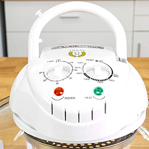 ✅ Il forno a convezione alogeno include: – Un coperchio in vetro con comandi di regolazione per la temperatura e il timer. Sistema ad aria calda. Bisogna solo un po’ di acqua o olio per cuocere. Vetro colato ad alta resistenza