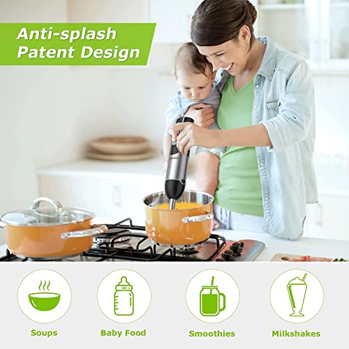 🍉 Frullatore a mano da 1200W: la potenza extra di 1200W è più veloce e più fluida rispetto agli altri frullatori, aiutandovi a risparmiare ancora più tempo.