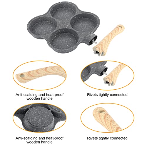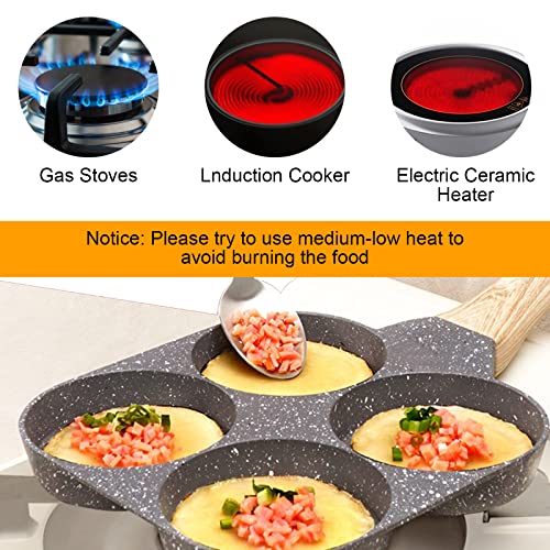 DESIGN MULTI-SEZIONALE: Questa padella per uova utilizza un design a quattro fori, perfetto per cucinare omelette, pancetta, hamburger, pancake, ecc. Può rendere la cottura più rapida e semplice e risparmiare tempo ed energia per la colazione
