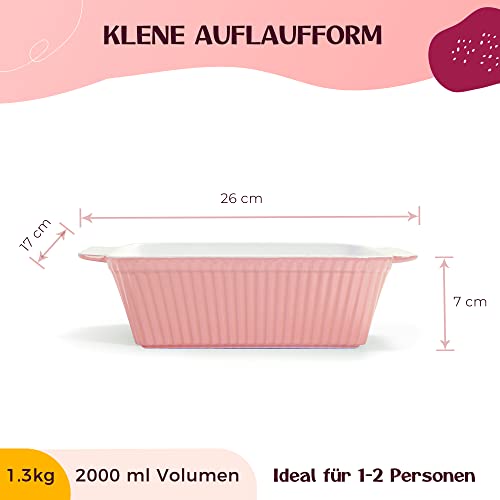 Happy Lemuro Pirofila piccola per 1 – 2 persone – extra alta – Pirofila da forno rettangolare | lasagne in ceramica – per lasagne, casseruola, tiramisù – lavabile in lavastoviglie – con eBook (rosa)
