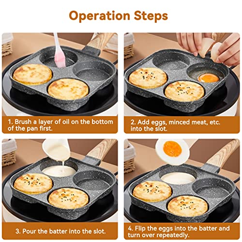 🍳 FAI QUATTRO UOVA CONTEMPORANEAMENTE: Pentola pancakes il design a 4 scomparti ti consente di friggere 4 uova o polpette contemporaneamente per tuo marito e i tuoi figli, padella pancake antiaderente risparmiando tempo e migliorando l’efficienza