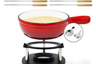 Kitchen Craft Set Regalo per Fonduta in Ghisa Smaltata, con Sei Forchette, Colore Crema