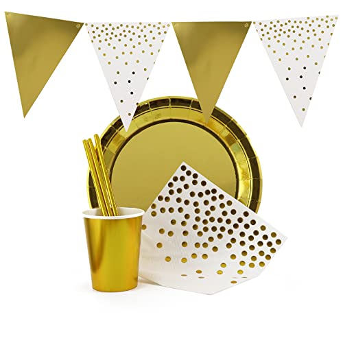 KIT DECORAZIONI COMPLEANNO: Stoviglie di compleanno usa e getta per 30 persone. Include 129 pezzi: set piatti bambini, tazze, tovaglioli, cannucce e una ghirlanda usa e getta.