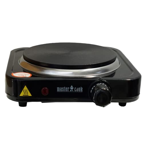 MasterCook – Piastra elettrica portatile, fornello elettrico con termostato automatico, protezione surriscaldamento, piedini in gomma e piastra in ghisa (1 fornello)