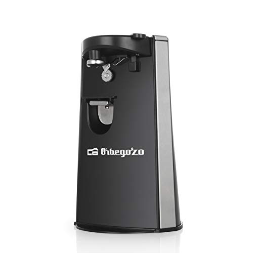 Orbegozo CU 6500 – Apriscatole elettrico, con apribottiglie e affilacoltelli, accensione automatica a pressione, potenza 60 W