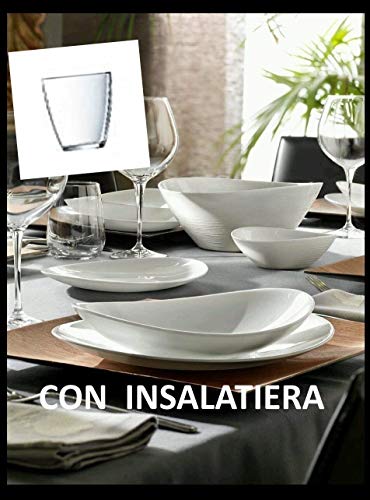 Pagano home Servizio piatti Bormioli Prometeo per 12 persone con insalatiera e 12 bicchieri omaggio totale 49 pezzi