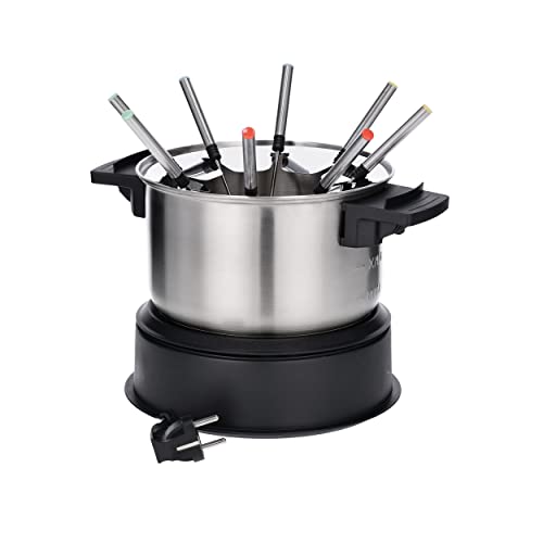 SEVERIN FO 2470 Set fonduta 1,4 L da 1500 Watt, Kit fonduta elettrica con 8 forchette colorate, Set fondue con regolazione continua della temperatura, Argento/nero