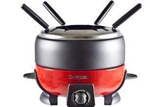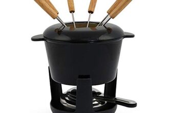 1 pentolino per fonduta smaltato con manico in legno 1 coperchio paraspruzzi in acciaio inox 1 réchaud cromato 1 piastra d’appoggio per bruciatore in acciaio inox 1 bruciatore a pasta combustibile 1 carosello in legno ...