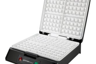 Macchina per waffle compatta per preparare 5 waffle croccanti con la tipica forma di cuore e disegno a nido d’ape della serie Fun Cooking di BomannTermostato regolabile di temperatura per controllare il livello di tostatura ...