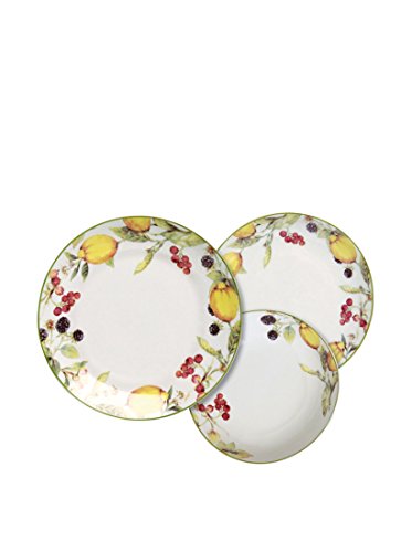 Include: 6 piatti piani (diametro 27 cm), 6 piatti fondi (diametro 21,5 cm) e 6 piatti dessert (diametro 20 cm)