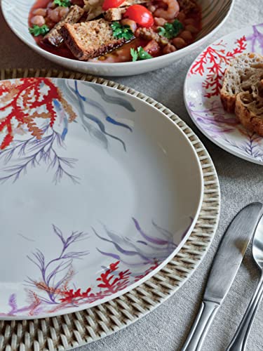 Piatti decorati con coralli, che ricordano il fondale marino, adatti ad una tavola piana di dettagli nei toni dell’azzurro
