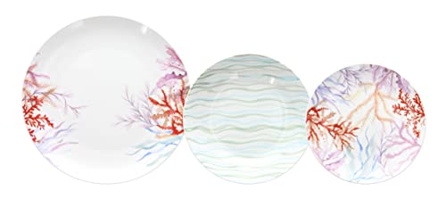 Servizio composto da 6 piatti piani da 27 cm, 6 piatti fondi da 20 cm e 6 piatti dessert da 19 cm