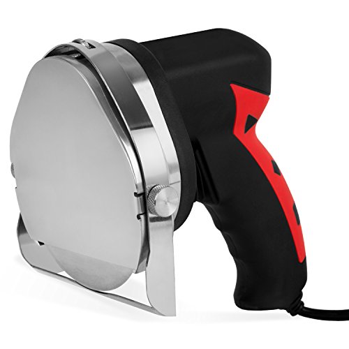 Vertes 80W Coltello Kebab elettrico (Diametro lama 100 mm, Spessore di taglio da 0,5 a 8 mm, Inclusa Pietra per affilare)