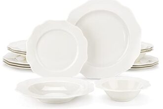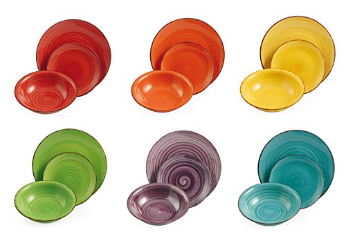 Servizio di piatti composto di: 6 piatti piani (27 cm), 6 piatti fondi (21.5 cm), 6 piattini da frutta (19.3 cm)